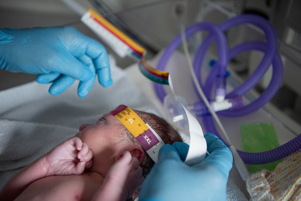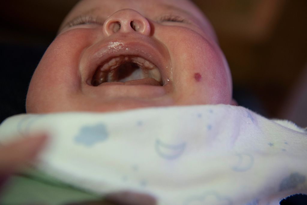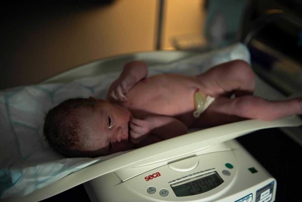 The raw moment after birth. The baby is captured like and object to convery the lack of paternal connection.