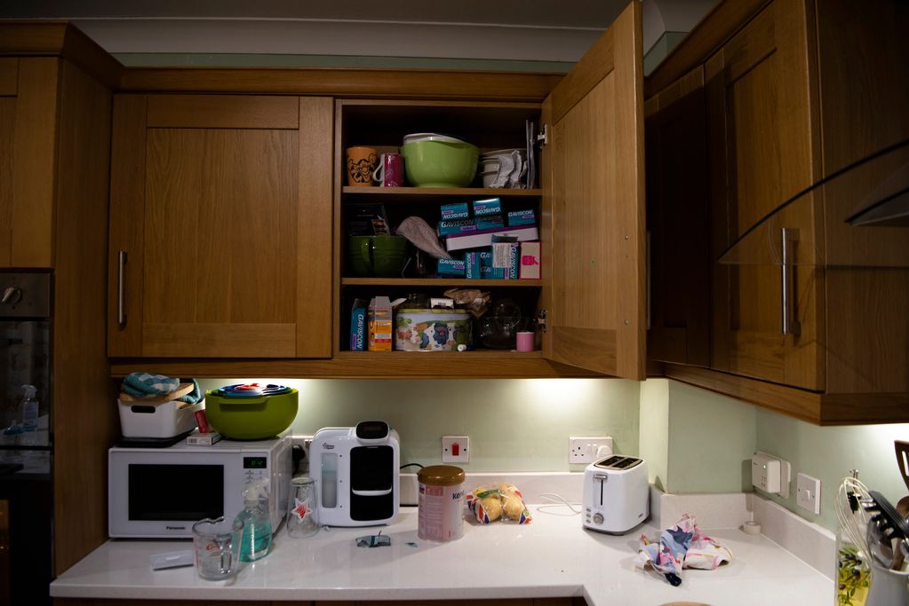 The cupboard and worktop space are slowly changed to accommodate the baby